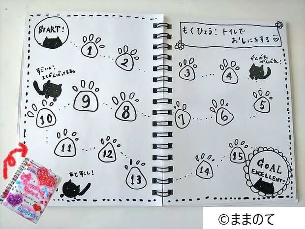 トイレトレーニング用の台紙は、目標を達成したことがわかるようゴールがあるタイプを選ぶと、子どももやる気が出て良いでしょう。ゴールに到達して達成感を得ることで、子どもの自信にもつながるはずですよ。表のように各マスに数字が書いてあるものや、マスが線路のようにつながっているタイプの台紙もおすすめです。