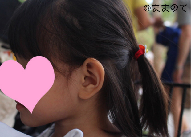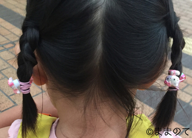 娘の髪は細いため、遊んでいるうちにヘアゴムやピンがとれてしまうことも少なくありません。そのため幼稚園のときは万が一取れてしまっても危険がないよう、シンプルなゴムだけを使うようにしています。