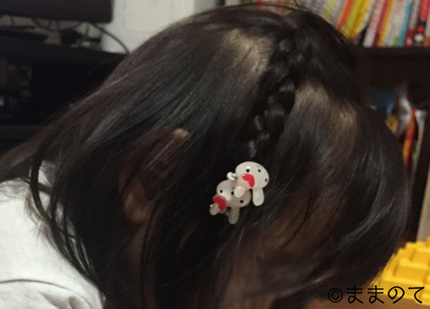 娘がお気に入りのヘアピンやヘアゴムをつけたがることもありますが、「取れてなくなってしまうかもしれないよ」と説明すると納得してくれます。