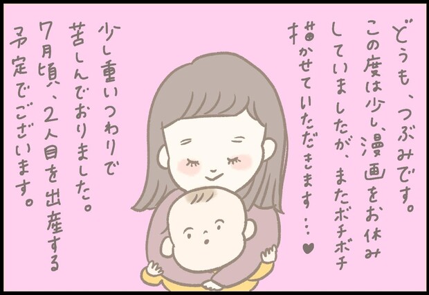 InstagramやTwitterで大人気・ほんわかした日常を描く、つぶみさんの「ままのて」育児マンガ。ままのての連載をしばらくお休みしていましたが、いよいよ連載再開です。なんと、今回はつぶみさんから嬉しいお知らせがあります。ぜひつぶみさんからのメッセージをご覧くださいね。息子・ほにゅくんの反応も必見ですよ。
