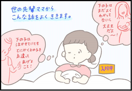 InstagramやTwitterで大人気・つぶみさんの「ままのて」育児マンガをお届けします。二人目が生まれると、上の子のことが気になって仕方がないというママも多いようです。先輩ママから、上の子のケアについてアドバイス受けたという方もいることでしょう。二人目出産直後のつぶみさんの気持ちをお届けします。