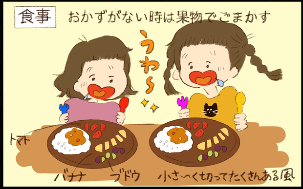 年子育児の日常を描くエッセイマンガ!おおもりなつみさん(Instagram:omori_nigaoe)が描く、あたたかくてかわいいイラストとコラムをお届けします。家事や育児で毎日忙しいと、どこかで手を抜きたいと考えてしまいますよね。今回は3姉妹ママ・おおもりさんの「ずぼらエピソード&手抜き術」をお聞きしましたよ。