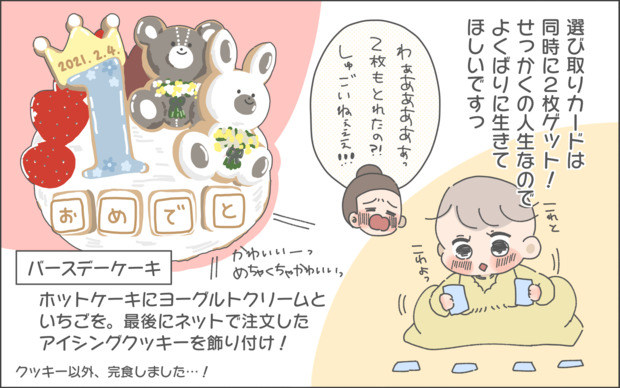 育児マンガ家おかめ(@omame_okame)さんの日常の出来事や奮闘をマンガでお届けします。第二子の長女こまめちゃんが、ついに1歳を迎えました。バタバタな育児で過ぎてしまった0歳児…だからこそ、1歳になるお誕生日には最高のものをやりたい!と意気込むおかめさん。さてどのようなお誕生日会になったでしょうか?