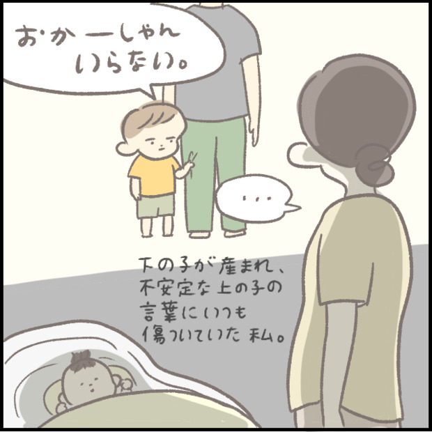 SNSで大人気つぶみさん(@tbys141122)の育児マンガです。産後は慣れない育児や新しい生活パターンから、ママの心と身体が不安定になることがありますよね。つぶみさんは産後、はじめてのきょうだいに戸惑う息子(当時2歳)からの言葉に傷ついてしまうことがあったそうですよ。あれから数年…現在はというと?